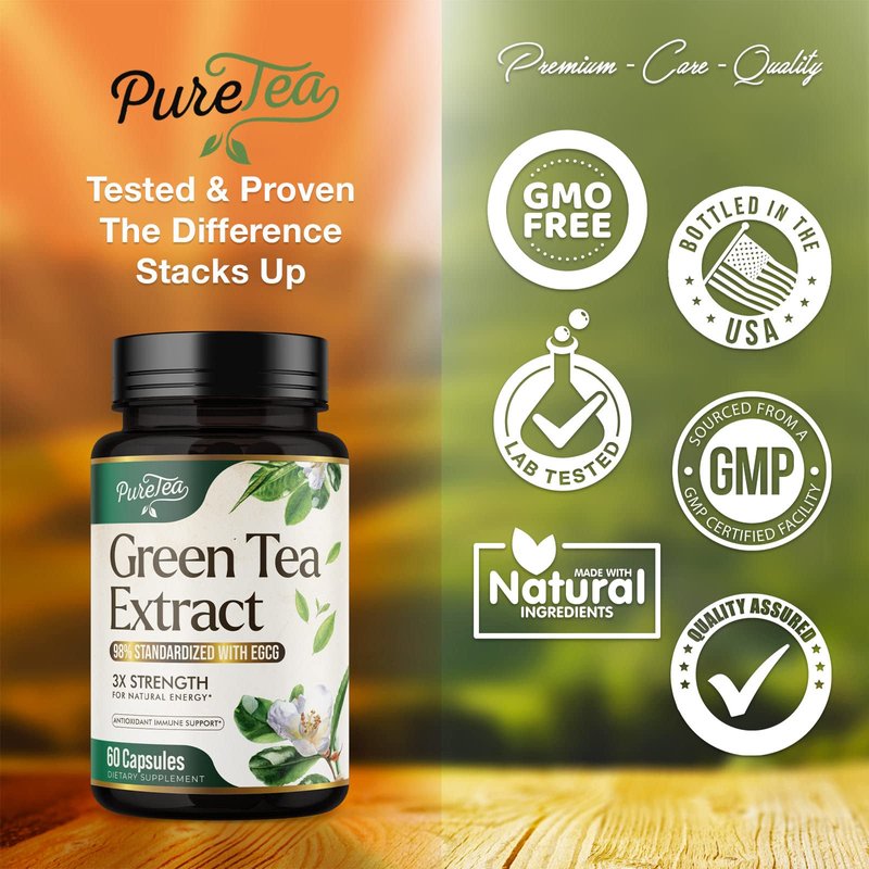 - Premium Green Tea Extract: PureTea Premium Green Tea Extract contains a green tea blend (with 98% Polyphenols, EGCG and Antioxidants) to support energy and immune support in Men and Women