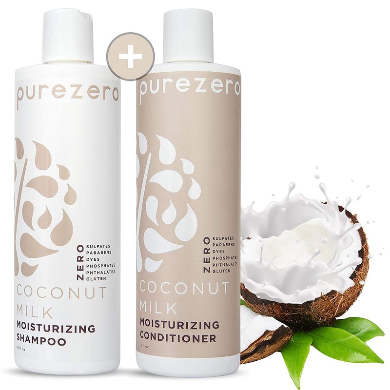 Purezero Coconut Milk Shampoo & Conditioner set - Intense Hydration & Increase Shine - Fight Dandruff & Frizz - Zero Sulfates, Parabens, Dyes - 100% Vegan & Cruelty Free - Great For Color Treated Hair