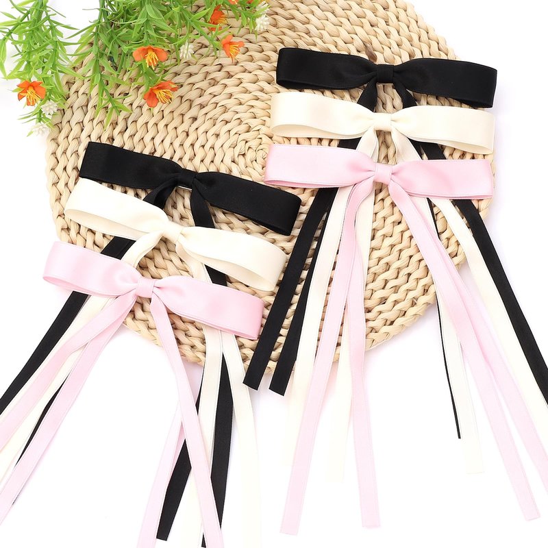 Purggy 6 Pcs Hair Bow Clips for Women Girls, Ribbon Hair Bows with Long Tail, Bowknot Tassel Claw Hair Clip for Women, Hair Barrettes with Bow Accessories(Black, pink, beige)