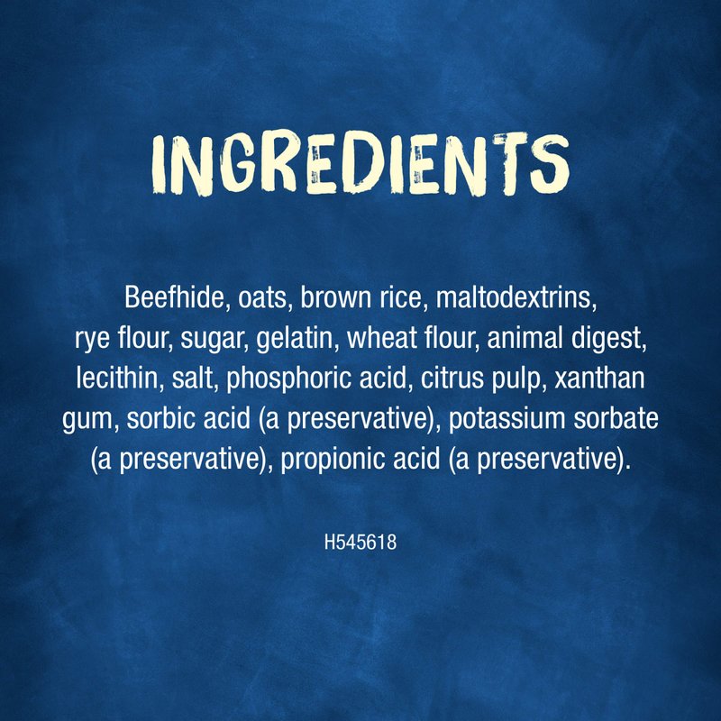 - Made with wholesome oats and brown rice for tasty goodness. Center layer features real beefhide that offers a flavor dogs love