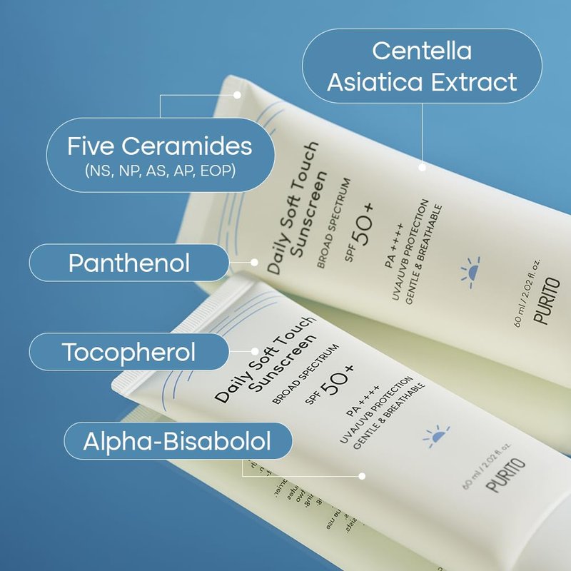 - ☀️ Daily Double Defense: The PURITO Daily Soft Touch Sunscreen is a high-protection, lightweight sun solution with board-spectrum protection. Its suite of five Ceramides also helps to moisturize and defend the skin barrier against external stressors.