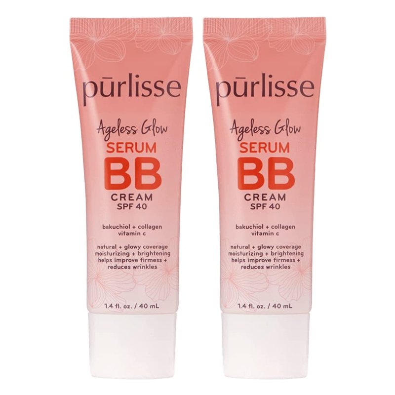 pūrlisse Ageless Glow Serum BB Cream SPF 40 | Full & Flawless Coverage, Hydrates with Collagen - Medium Warm (2 Pack)