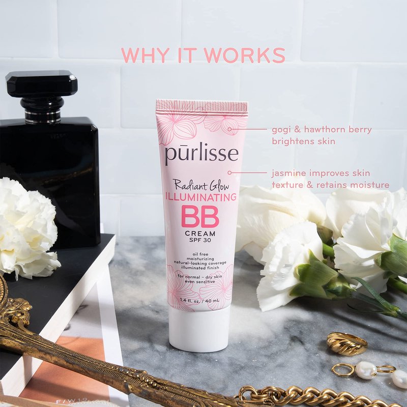 pūrlisse Radiant Glow Illuminating BB Cream SPF 30: Cruelty-Free & Clean, Paraben & Sulfate-Free, Light Coverage, Brightens with Hawthorn Berry| Fair 1.4oz