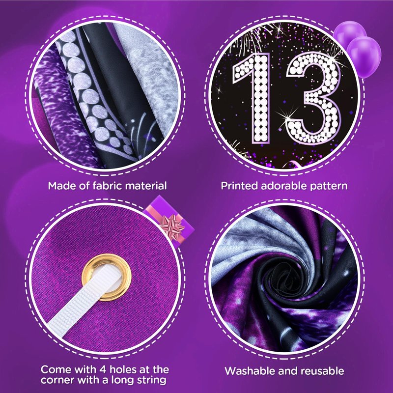 - 【Ideal for 13th Birthday Party】 Elegant design with purple, black and silver happy 13th birthday party elements, suitable for girls and boys, it is a nice 13th birthday party banner poster, you can write some words on it, makes your birthday party an impressive event, suitable for indoor or outdoor use.