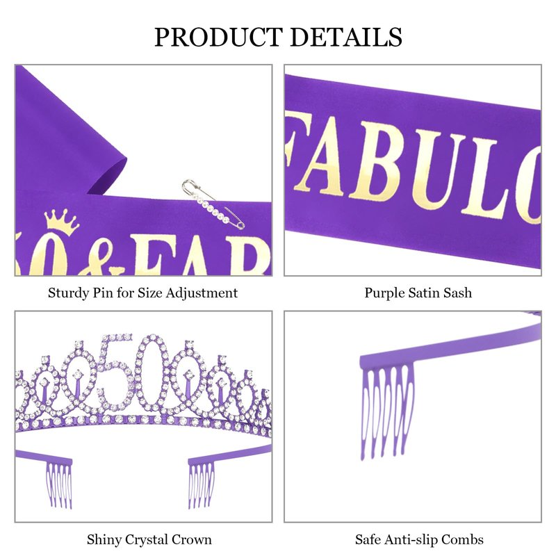 - Package Included: The package contains "50 & Fabulous" birthday sash, 50th crown and a pearl pin. It's a great birthday gift for you. You will be like a queen in your birthday celebration.