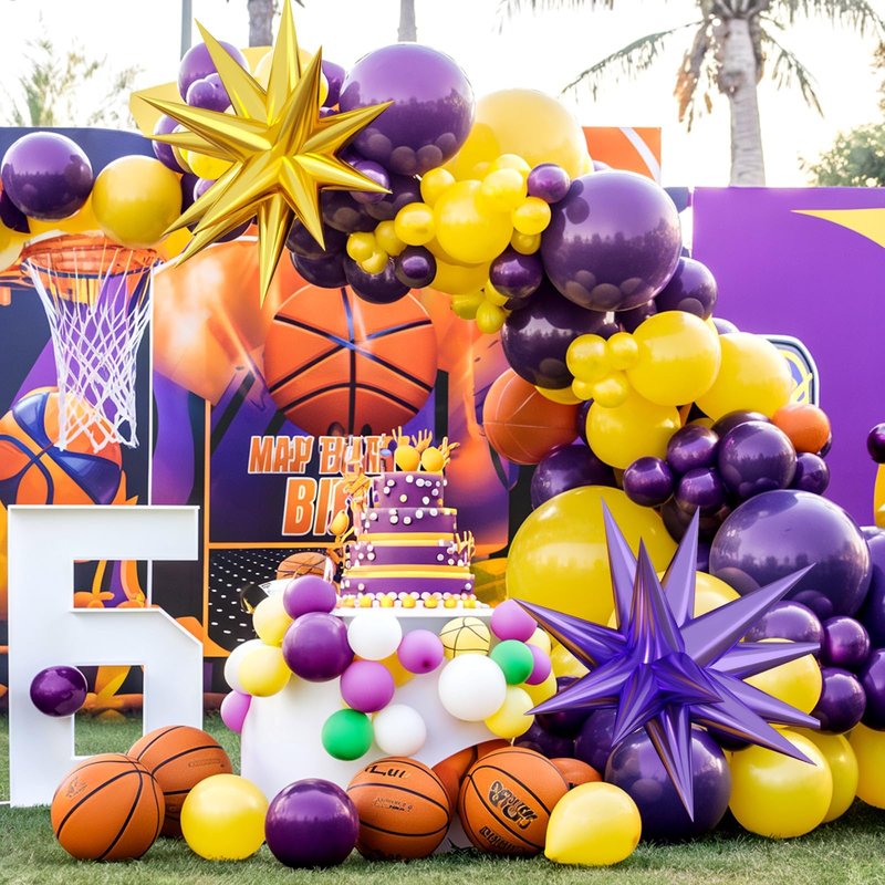 - 【Various Occasions】Our yellow and purple balloon arch set is not only suitable for basketball theme party, sport theme party,birthday decorations,anniversaries,baby shower,but also for any other occasion that needs to be celebrated. Adding freshness to your party with these balloons would be a joyful experience