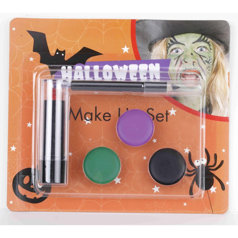 - 🎃Super Value Halloween Makeup Kit🎃Halloween makeup kit Includes: Tri-Color Character Makeup Palette+Red Face Paint Stick+Black Eyebrow Pencil.This Halloween Makeup Kit can be used to complete a number of great looks including: Witch, Frankenstein, Wolf, Jolly Green Giant, Ghost, Clown, Vampire, Mime etc.