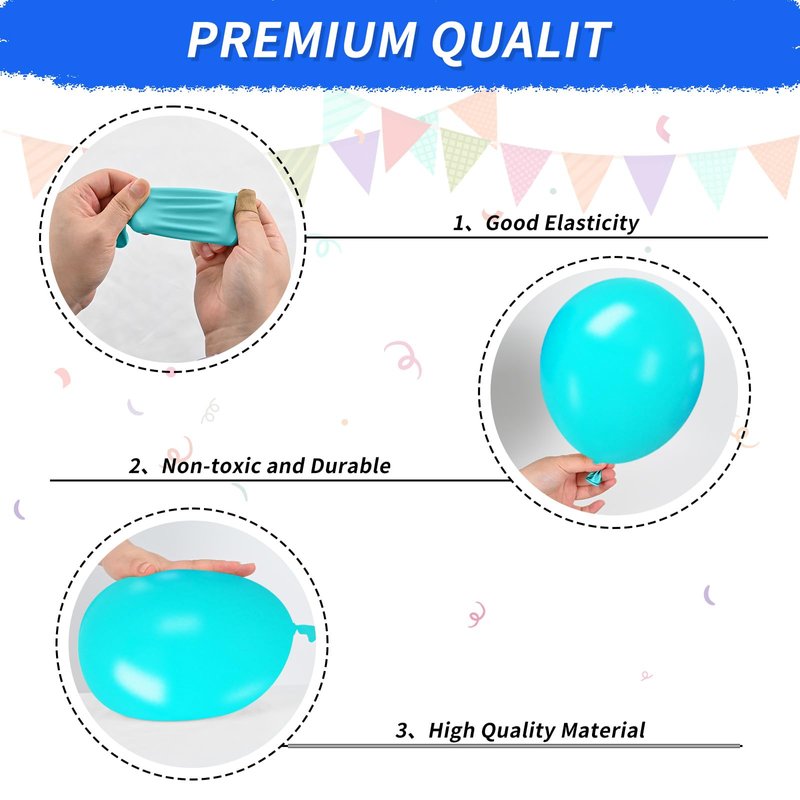 - Balloon material: All balloons are made of natural latex, and each balloon has been strictly hand-tested. The balloons are elastic, non-toxic, harmless and safe. They can be filled with air or helium, and it is recommended to use with a balloon pump
