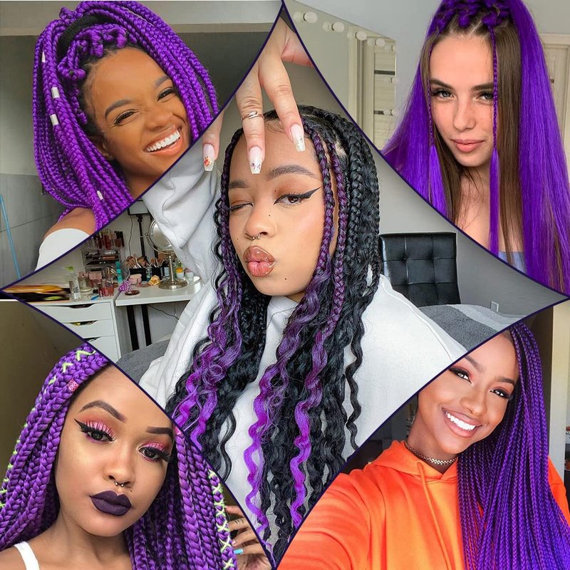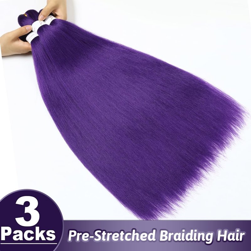 Purple Braiding Hair Extensions 16 Inch Pre stretched Braiding Hair Hot Water Setting Synthetic Hair Pre Stretched Crochet Braids Hair(16 Inch,3 Packs,Purple#)