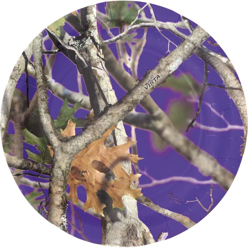 Purple Camo Dessert Plates (Next Vista Camo, 7" Round Plates - 8 Pack) Camo Colorz Party Collection by Havercamp
