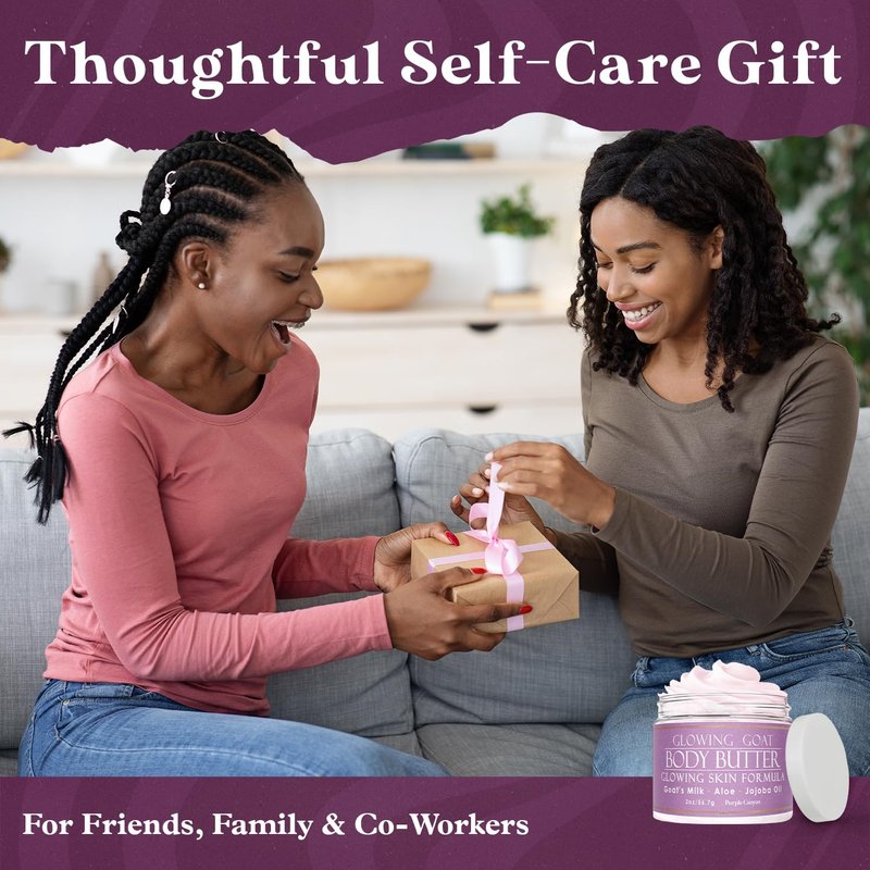 - Treat your loved ones to the perfect skin care gift with our Glowing Goat body butter; the enchanting scent of rose, lavender, and cedar, combined with the nourishing benefits of premium ingredients, make this whipped body butter an exquisite present for any occasion; elevate their skincare routine and let them experience the luxury of radiant, pampered skin.