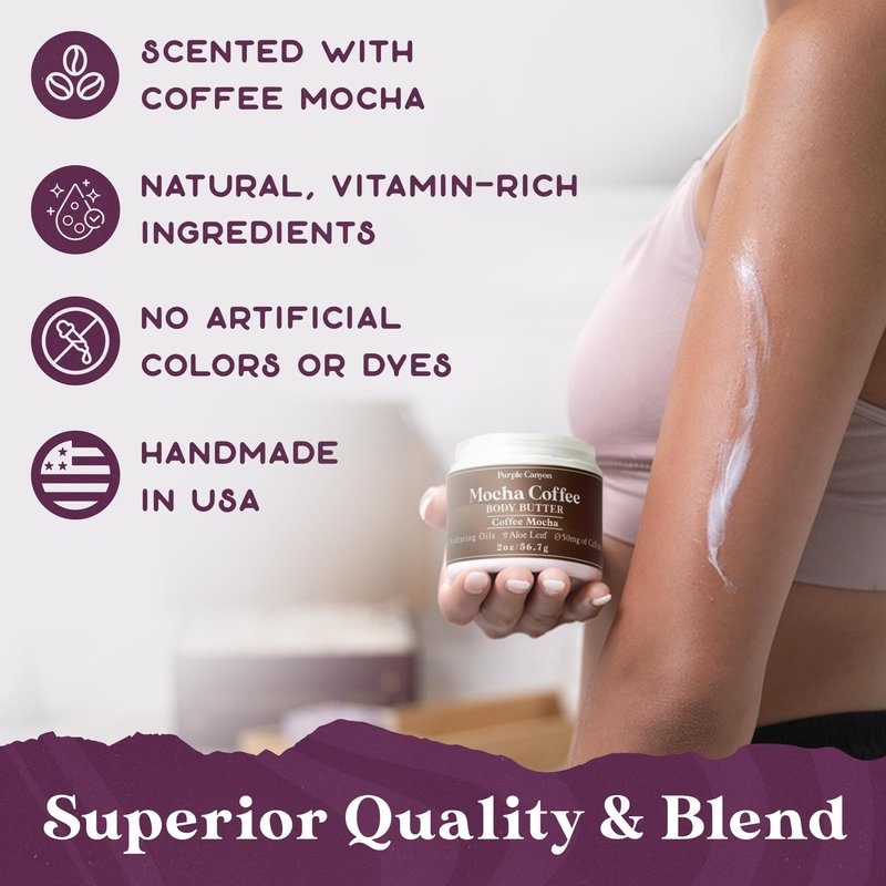 PURPLE CANYON Sunrise Energy Whipped Body Butter 2 oz | Coffee Mocha Moisturizer Infused with Caffeine | Body Lotion with Jojoba Oil and Aloe Vera for Skin Care