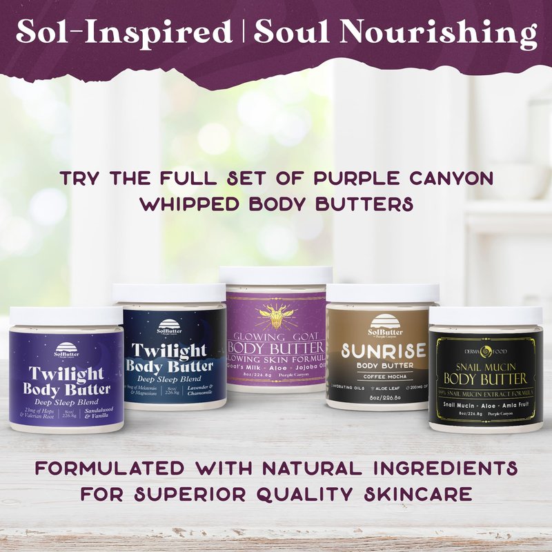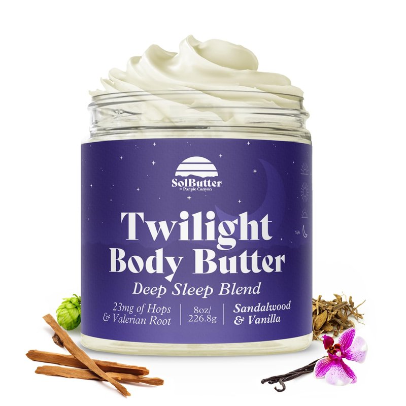 PURPLE CANYON Twilight Whipped Body Butter 8oz | Relaxing Vanilla Sandalwood Scent for Deep Sleep | Natural Skin Care with Hops & Valerian Root