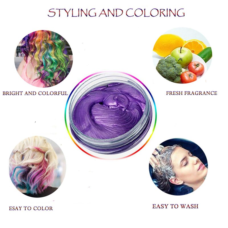 Purple Hair Color WAX 4.23 oz, Instant Hair Dye Wax, Natural Temporary Hair Color for Men and Women, Party, Daily Use, Cosplay