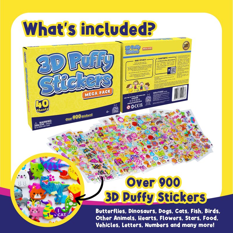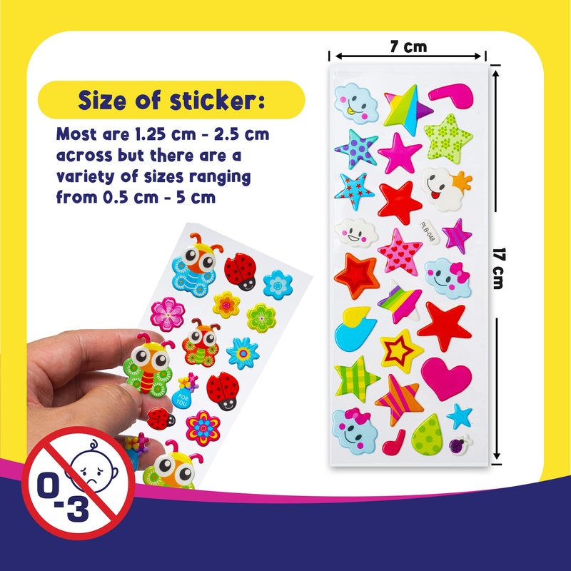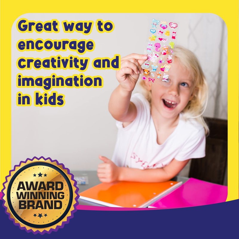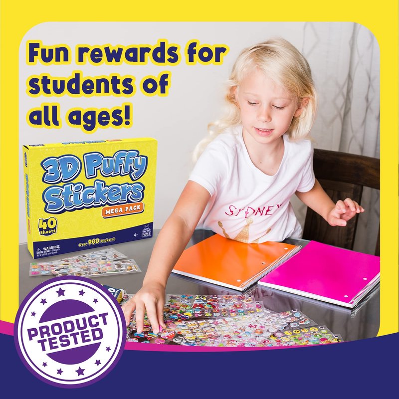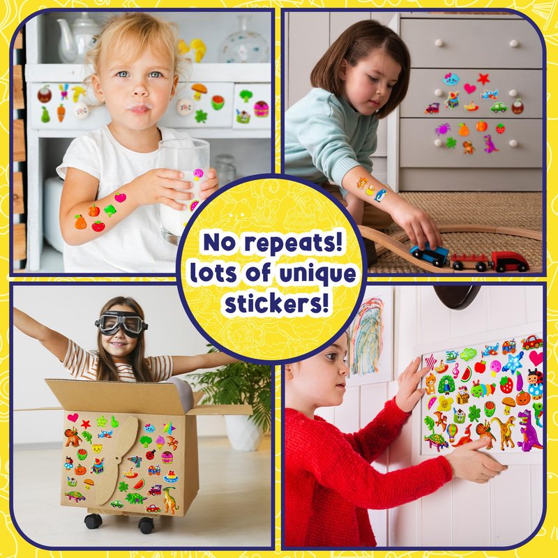 - Incredible value! No repeated sheets! 40 different sticker sheets for kids (6.75 inches x 2.75 inches each) with approximately 24 stickers per sheet for a total of 950+ assorted stickers, with each sheet in an individual sleeve. Great 3d stickers collection. Tons of stickers makes for hours of fun!