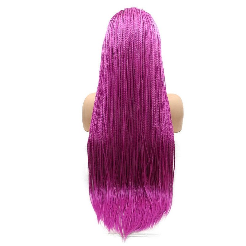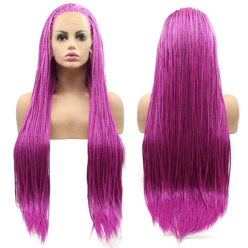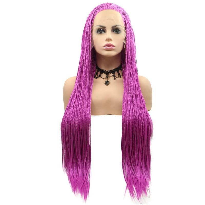 Purple Long Box Braided Wigs Micro Braided Lace Front Wigs for Women Hot Purple Braid Synthetic Wigs Glueless Heat Resistant Fiber Hair for Cosplay Party 28inches