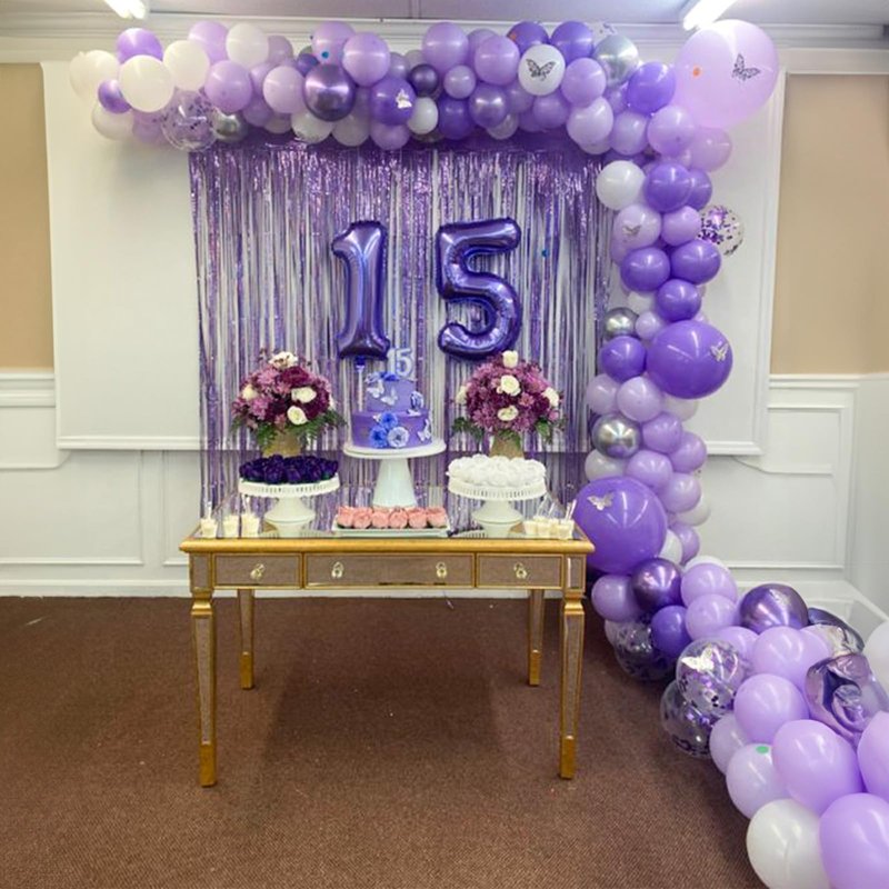 - Lavender Purple Balloons:You will receive this 60pcs 12-inch lavender purple balloons set, which includes 5 different purple colors. Metallic purple balloons x 15, macaron violet balloons x 10, matte purple balloons x 10, light purple balloons x 10, purple confetti balloons x 10. Accompanying by a 10m ribbon. Pastel purple decorations to embellish kids birthday party