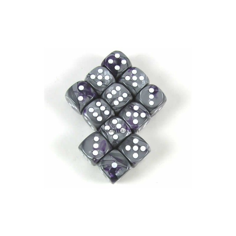 WCX26832E12 Purple Steel Gemini with White Pips 12mm D6 Dice (12)