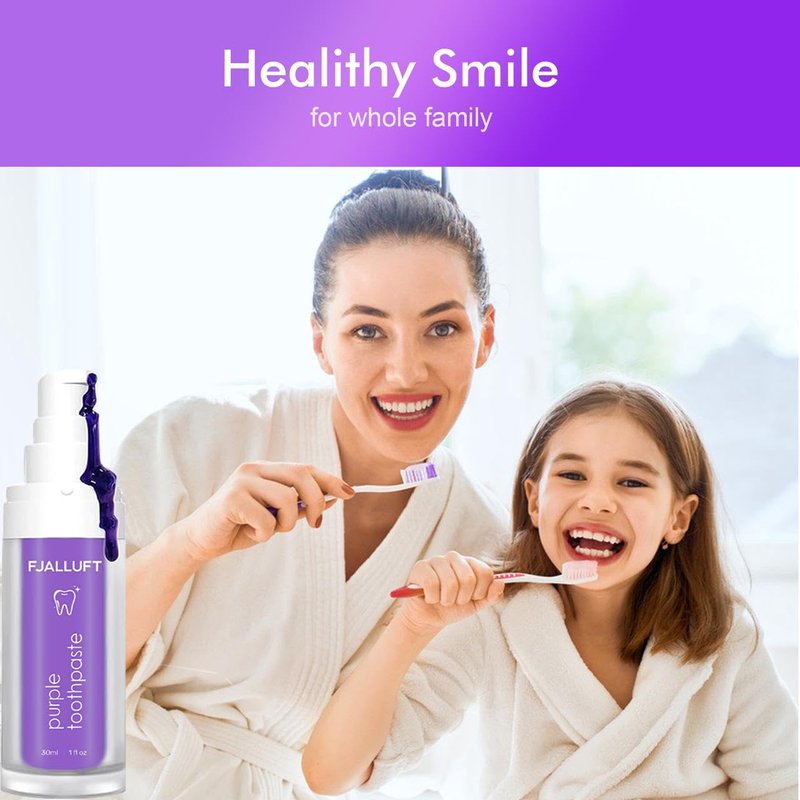 - Color Correction Whitening Toothpaste:The Purple Toothpaste for teeth Whitening is a peroxide-free and non-abrasive Whitening Toothpaste,Purple teeth Whitening uses color correction technology to neutralize yellow undertones on the teeth, resulting in a brighter smile.It’s a new choice of dental color corrector.