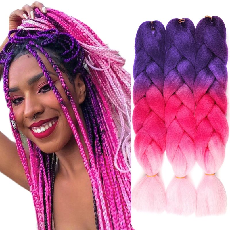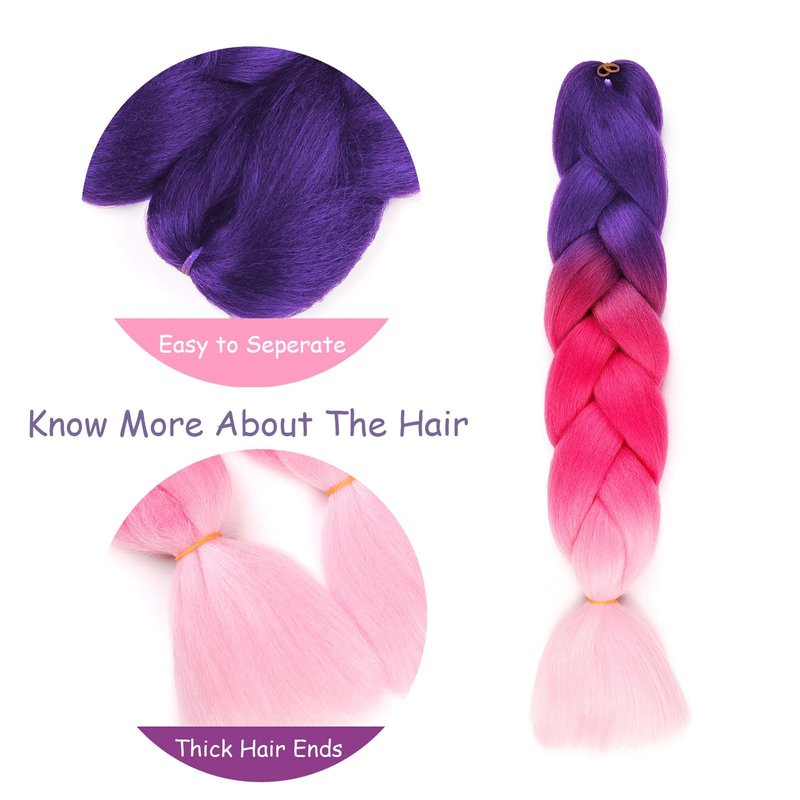 Purple Violet Braiding Hair Extensions Ombre Braiding Hair 3 Packs 24 inch Synthetic Hair for Braiding