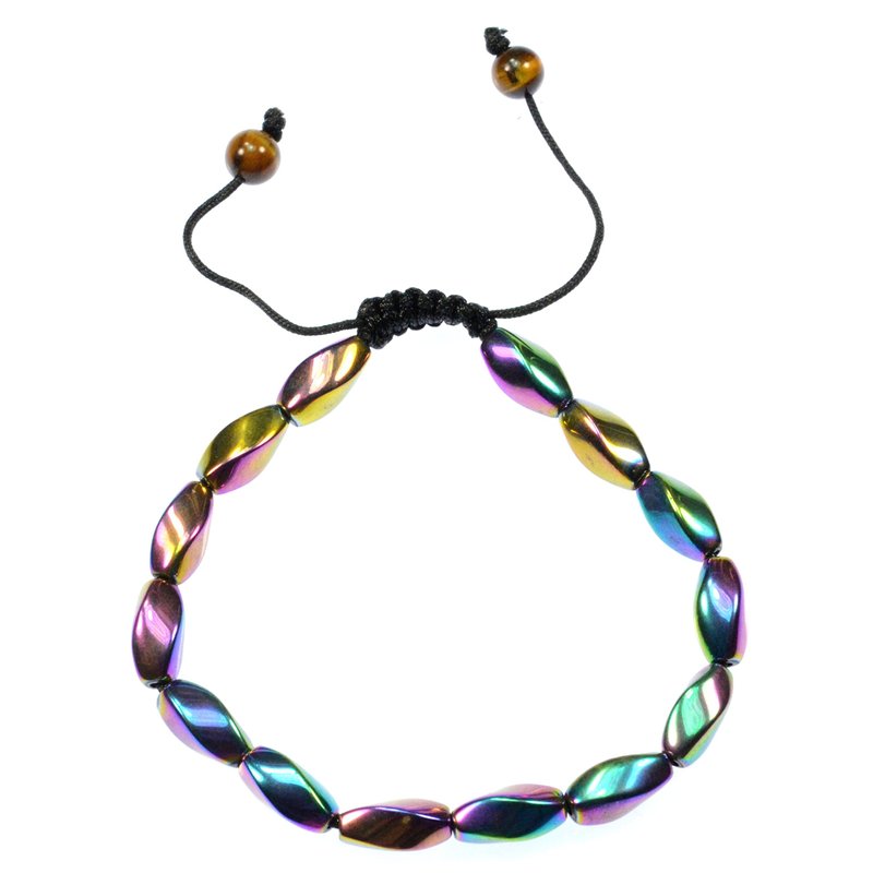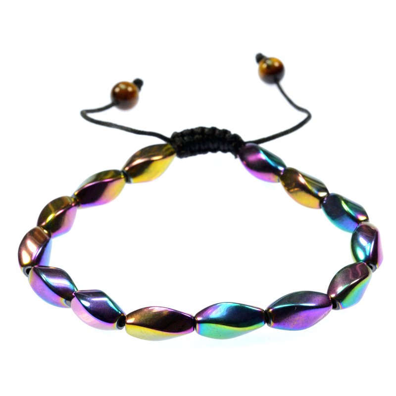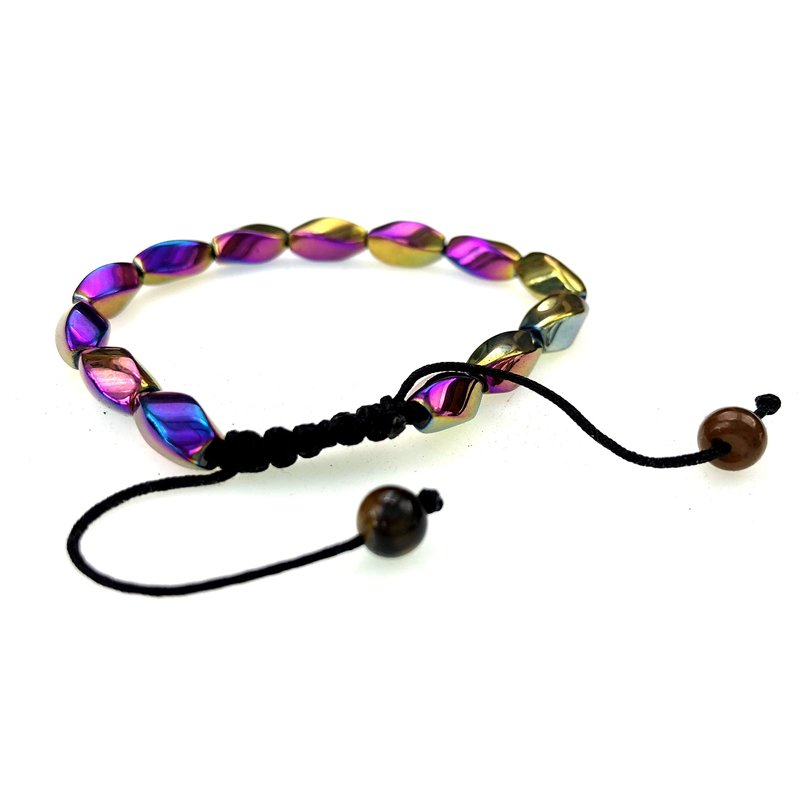PURPLE WHALE Iridescent Hematite Twisted Beaded Bracelet for Women, Men | Handmade Macrame Style Adjustable Bracelet for Good Luck, Protection (Multi-color)