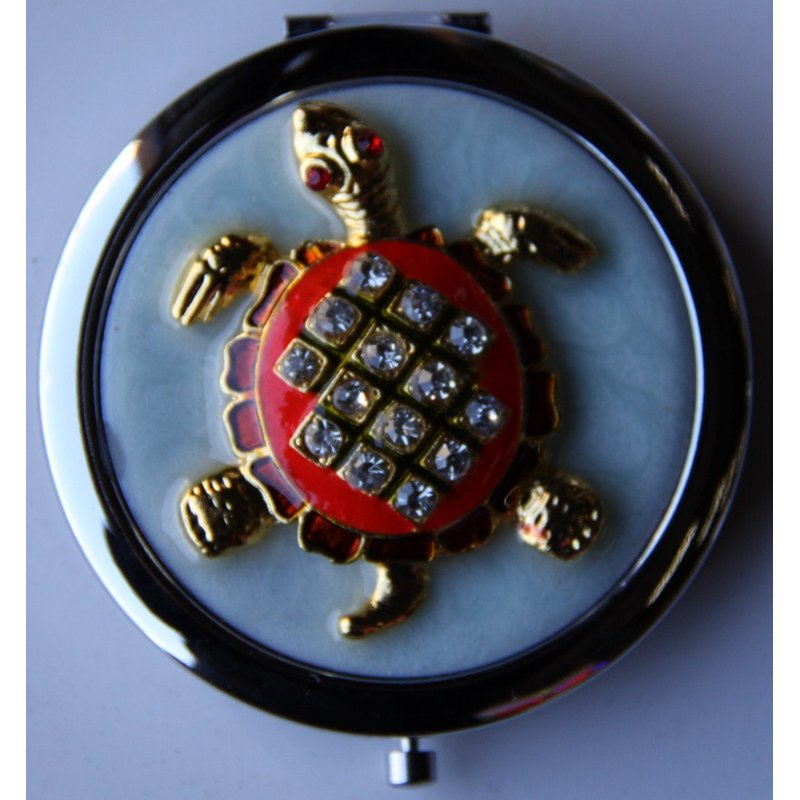 Purse Handbag Double Compact Cosmetic Mirror - Jeweled Turtle