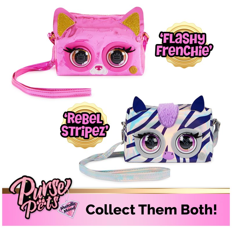 - OVER 30 NEW SOUNDS & REACTIONS: Purse Pets girls toys come to life! Metallic Mood Purse Pets make cute and sassy sounds, love snuggles, flutter their lashes, play music and more! Requires 3 AAA batteries (not included).