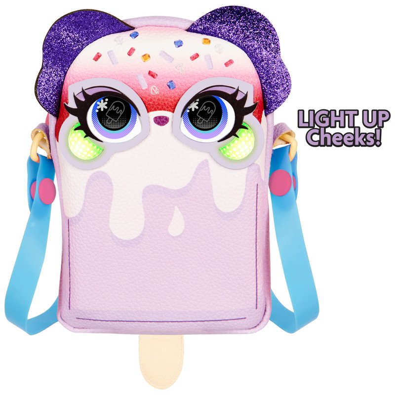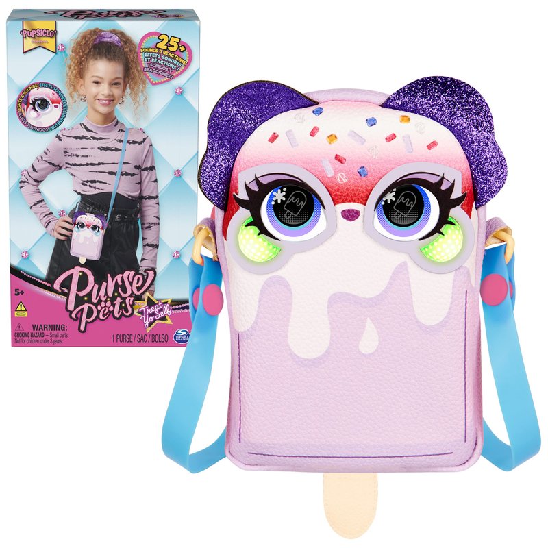 - INTERACTIVE PET AND KIDS PURSE: Pupsicle’s unique mashup look, pebbled faux leather, glitter ears, pop art eyes, jelly strap and vertical shape make this Purse Pets kawaii purse the ultimate pet and fashion accessory! Does not blink.