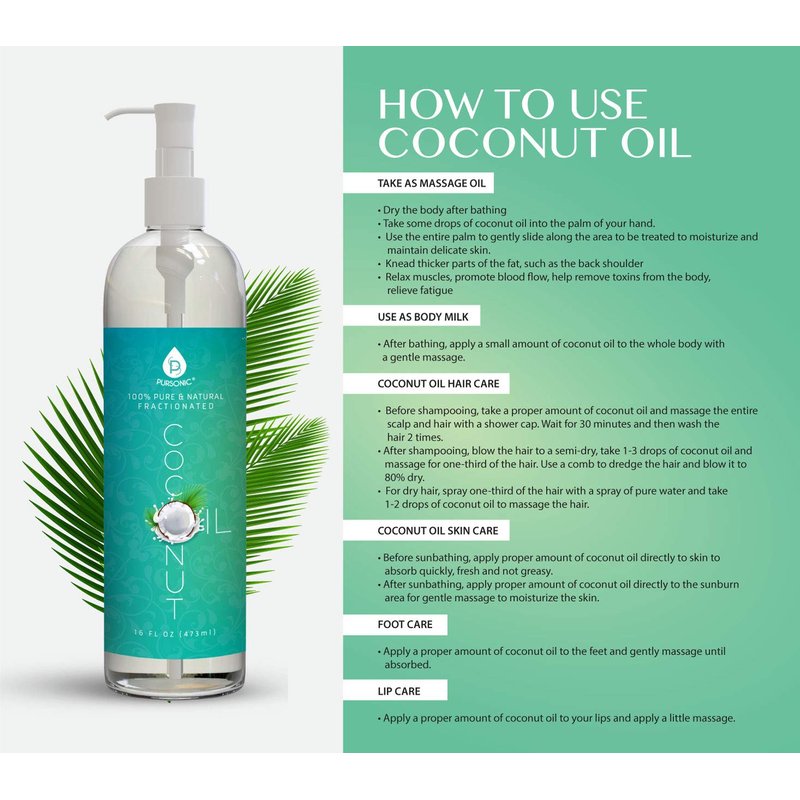 Pursonic 100% Pure Fractionated Coconut Oil, 8oz Oil for Massages, Therapeutic Recipes & Essential Oils (8)