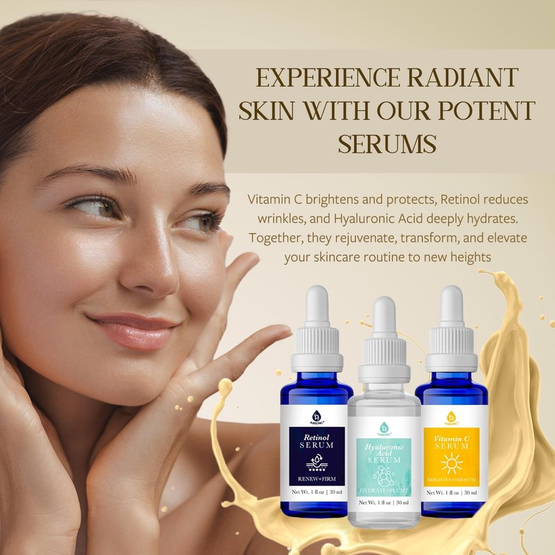 - 🎯【 Targeted Skincare Solutions】Infused with Hyaluronic Acid Serum for face serum, Retinol, and Vitamin C, our face serums offer a holistic approach to combat fine lines, wrinkles, and dryness.