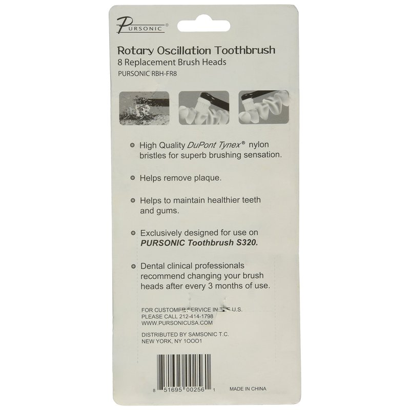 Pursonic RBH-FR8 Replacement Brush Heads for Pursonic S320/ S330 Rotary Brush Heads, 8 Count