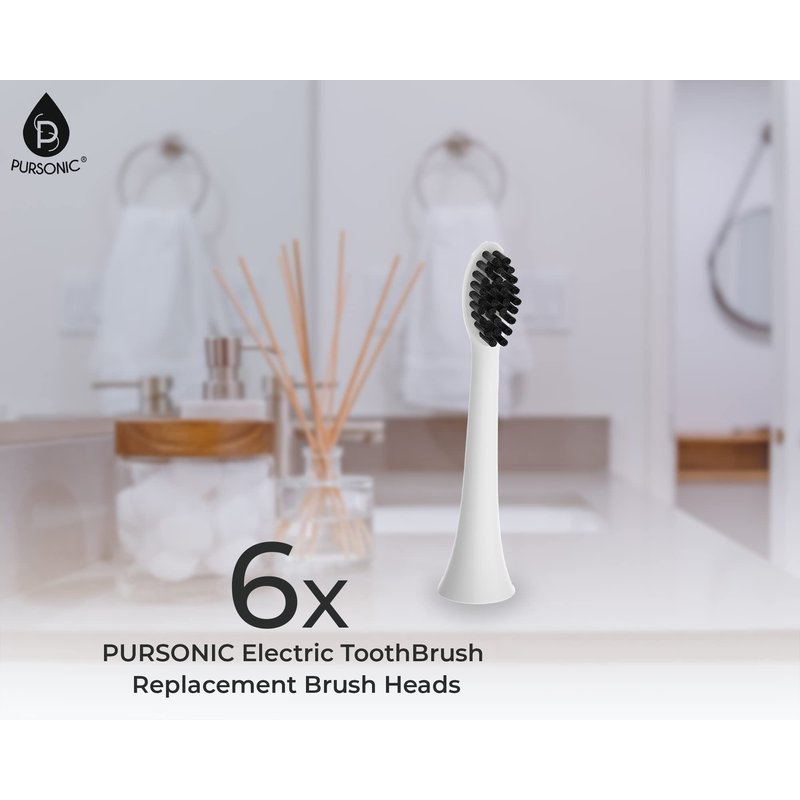 Pursonic Replacement Toothbrush Heads Charcoal Infused Bristles Compatible with Sonicare Electric Toothbrush 6 Pack