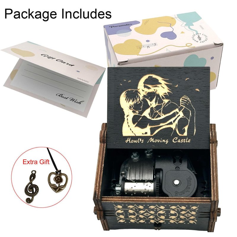 Pursuestar HowlMoving Castle-Merry Go Round of Life Wind Up Music Box, Vintage Engraved Wood Mechanism Musical Gifts for Birthday Valentine's Day Christmas Thanksgiving