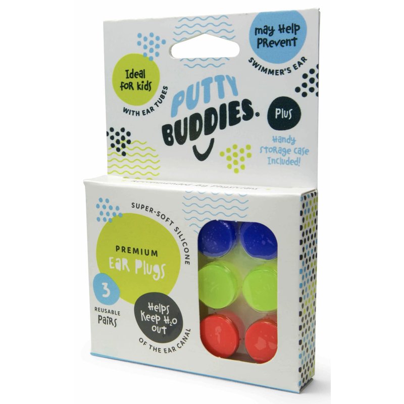PUTTY BUDDIES Original Swimming Earplugs, 3-Pair Pack (Red/Blue/Yellow)