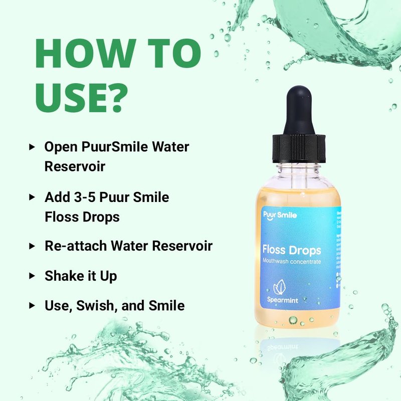 Puur Smile Concentrated Floss Drop Serum – 2oz Concentrated Mouth Wash to Use in Water Flosser | Natural Essentials Promotes Good Breath | Organic Spearmint Drop Supports Good Oral Health