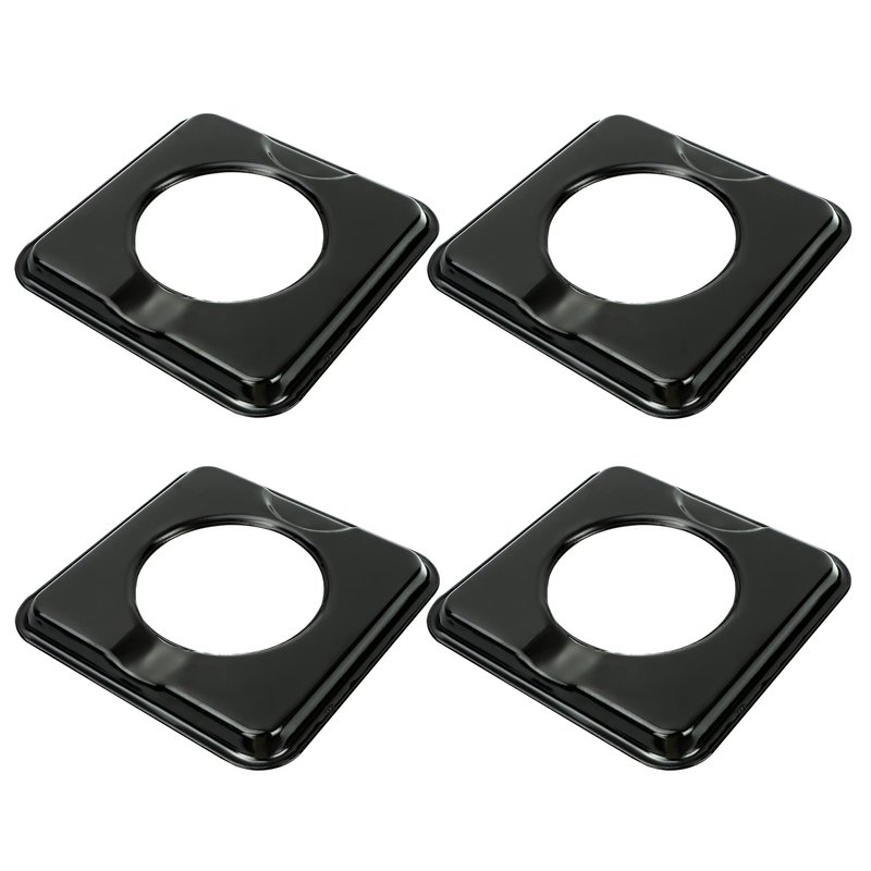 - 4-Pack Value Set Combo : Set of four Puxyblue Black Steel Square BN24 Heavy Duty Reusable Drip Pan Gas Stove Burner Liners. Length:7.7 inch , Width: 7.7 inch , Interior Diameter measures 4.5 inch.