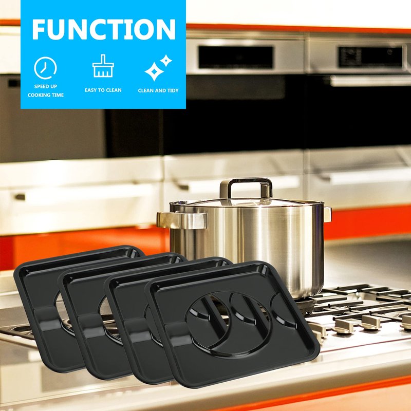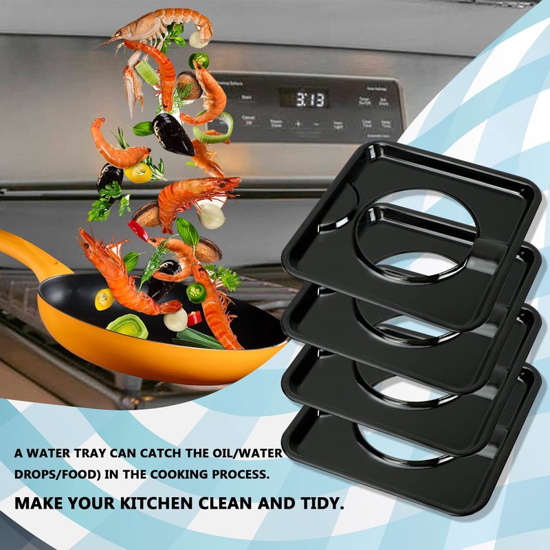 - Simple And Easy To Install: no need to hire a maintenance master, do-it-yourself replacement, simple and easy to operate.(Note: Prevent burns.Before installing the electric stove drip tray, please wait for the surface to cool to touch.And be sure to cut off the power and wear protective gloves.They are metal trays that go under the grates of a gas stove to catch drips of spill over during cooking)
