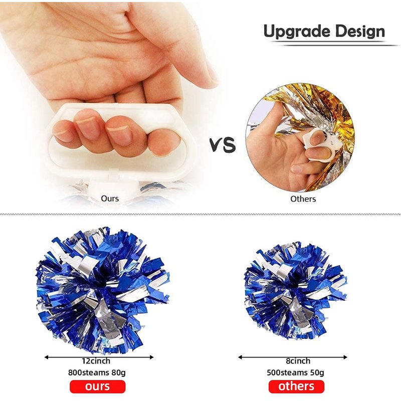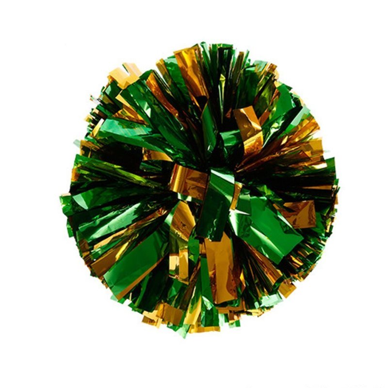 PUZINE 2pack 12" Cheerleading Pom Poms with New Handle for Team Spirit Sports Dance Cheering Kids Adults(Green with Gold)