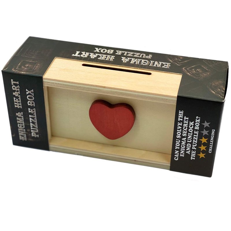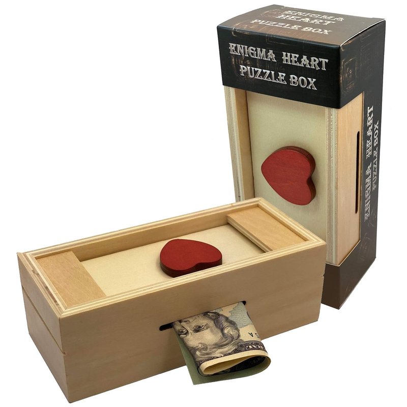 Puzzle Box Enigma Heart Secret - Money and Gift Card Holder in a Wooden Magic Trick Lock with Hidden Compartment Piggy Bank Brain Teaser Game