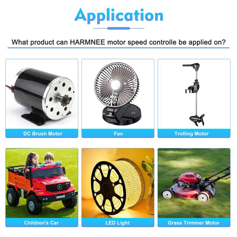 - ♕【Application】 The DC motor driver can be used on brush motor speed regulation, light dimming regulation in the DC circuit. Note: The motor cannot be used in electric vehicles.