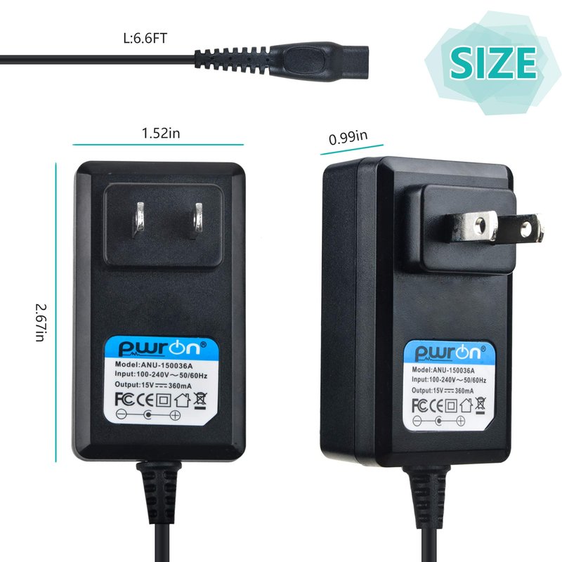 PwrON Philips Razor Charger, 15V 5.4W AC DC Adapter (6.6ft) Fits for Philips Norelco HQ8505/8500X Shaver Razor HQ RQ QC QT at PT XL HS Series, HQ6070 AT810 PT720 RQ1250 S5000 7867XL QT4050 YS524