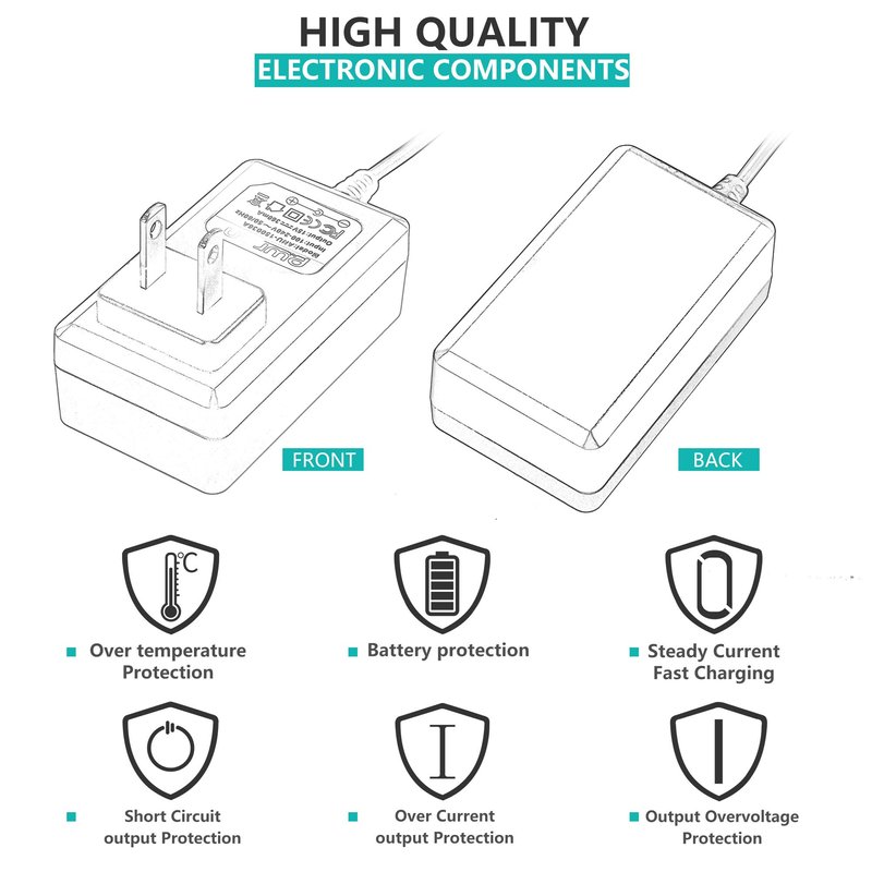- ▶POWER SPECS: ✎Cable Length: Only PwrON Chargers Have Extra Long 6.6 FT Power Cords / ✎Input Voltage Range: AC 100V - 240V; DC Output: DC 15V 0.36A 5.4W / ✎Connector: Small 8 graphics / ✎Low interference and noise. High efficiency and reliability. Short circuit and over voltage protection