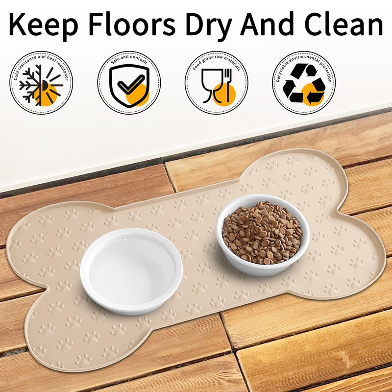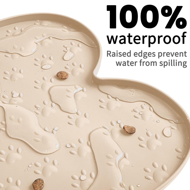 - Raised Edge - The high edge of this feeder mat keeps food and water within the tray and prevents spillage onto a clean floor. Keep your living space tidy and clean, say goodbye to messy floors, you just need to clean the dog bowl mat regularly.