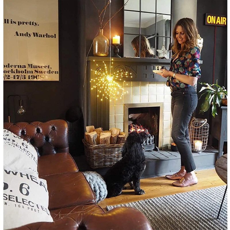 - 【SCOPE OF APPLICATION】The solar panel of the firework light is connected with the copper wire light string through the spiral port, can be disassembled and charged. Solar starburst lights can be used in indoor rooms, can decorate your Christmas tree, bedroom, wedding scene, cafe, window, can also be used as night light, outdoor decorative lights, corridor lights. Ideal for festive decorations, such as Christmas, with the effect of fireworks, creating a romantic atmosphere.