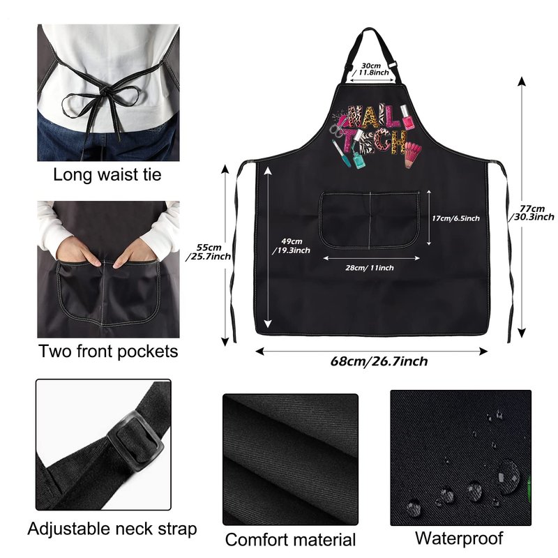 PXTIDY Nail Tech Apron With Pockets Nail Tech Gift Nail Salon Gift Nail Tech Supplies Waterproof Apron Adjustable (NAIL TECH Apron)