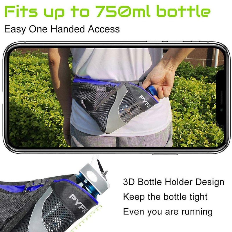 PYFK Running Belt Hydration Waist Pack with Water Bottle Holder for Men Women Waist Pouch Fanny Bag Reflective (Blue)