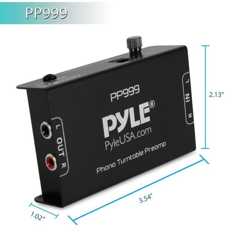 Pyle Phono Turntable Preamp - Mini Electronic Audio Stereo Phonograph Preamplifier with RCA Input, RCA Output & Low Noise Operation Powered by 12 Volt DC Adapter - PP999 , Black