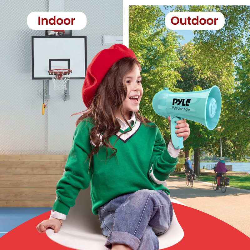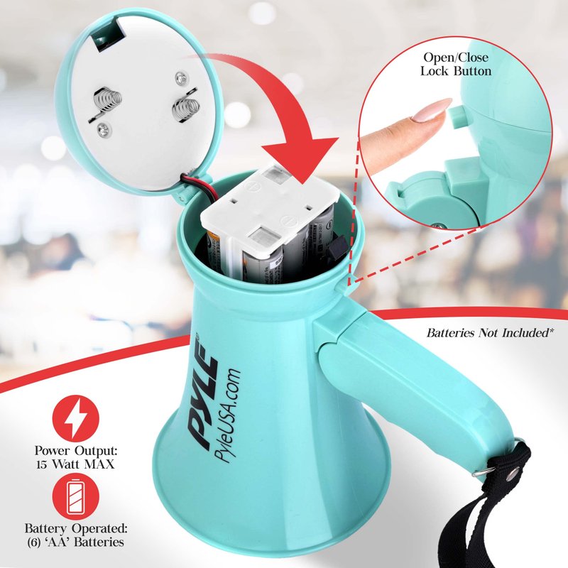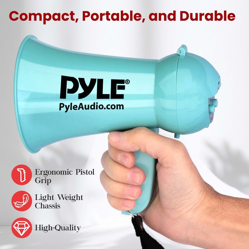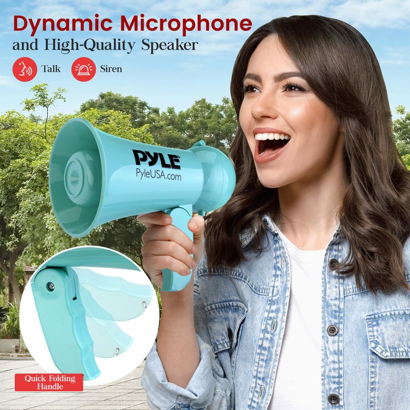 Pyle Portable Megaphone - Battery Operated Horn Loudspeaker with Siren, Built-in Dynamic Microphone and Speaker, Adjustable Volume Control, Talk, and Siren Switch (Turquoise)