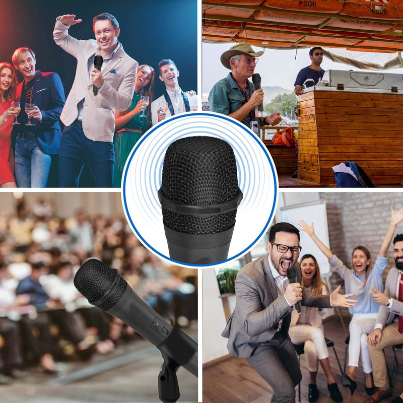 - ULTRA-WIDE FREQUENCY: This black wireless handheld microphone system features ultra-wide frequency and broad audio response range with low distortion. Enjoy cordless singing to karaoke music and mobility for energetic on-stage performance