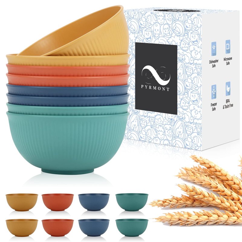 PYRMONT 26 OZ Plastic Bowls-Soup Bowls, Bowl Set of 8, Cereal Bowl, Small Bowls, Wheat Straw Bowls, Bowls for Kitchen,Unbreakable Kids bowls, Dishwasher & Microwave Safe Bowls, BPA-Free
